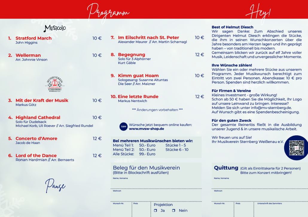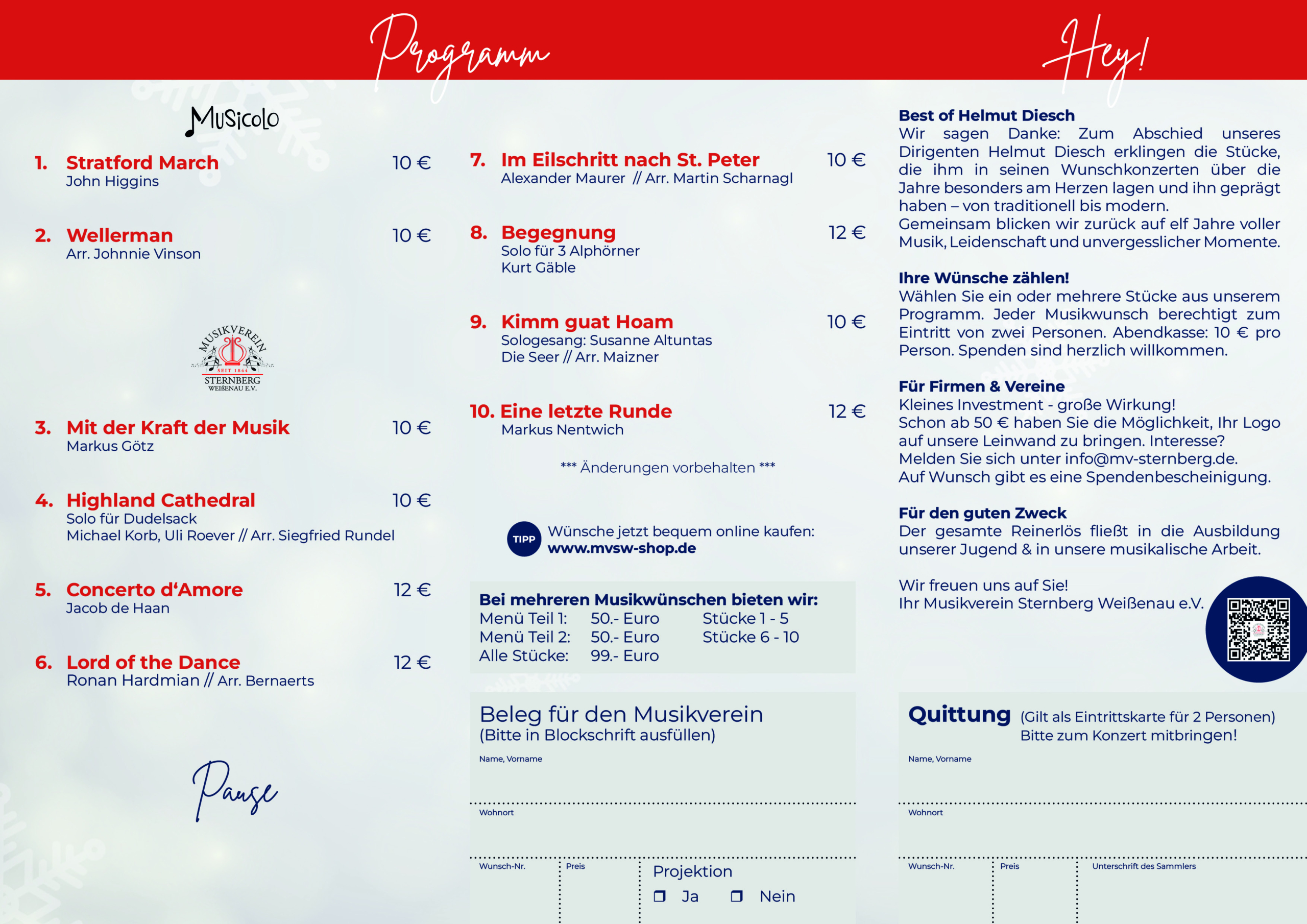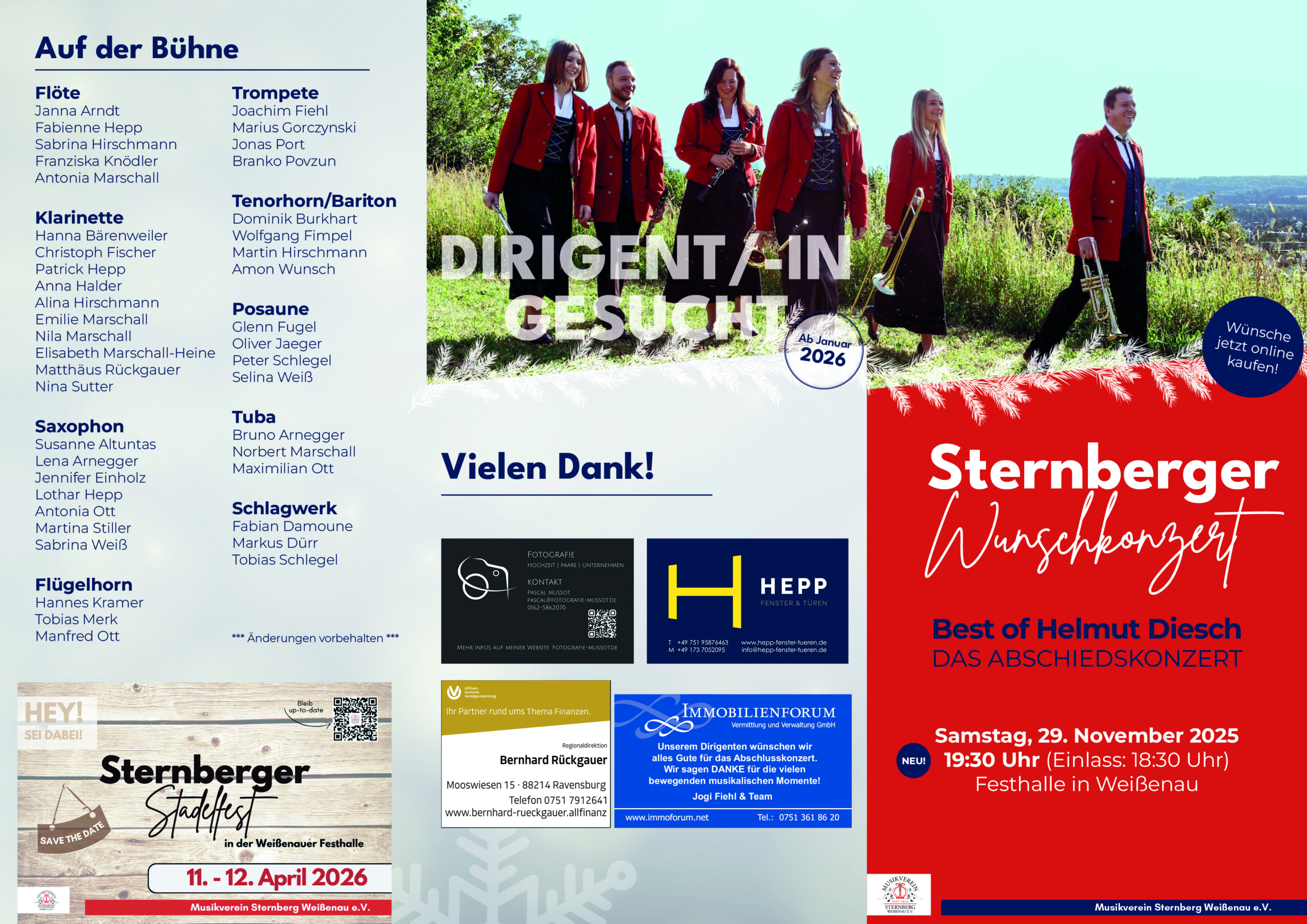 Der Musikverein Sternberg Weißenau e.V. besteht bereits seit 1844 und gehört damit zu einem der ältesten Musikvereine der Region. Gar nicht alt hingegen ist unser Musikstil. Von traditionellen Märschen und Polkas über Medleys und bis hin zu modernen Popsongs mit Gesang reicht unser Repertoire und spricht dadurch Jung und Alt an. Dies merkt man auch an der Mischung unserer aktiven Musiker. Jedes Alter ist vertreten und mit Freude und Spaß dabei.